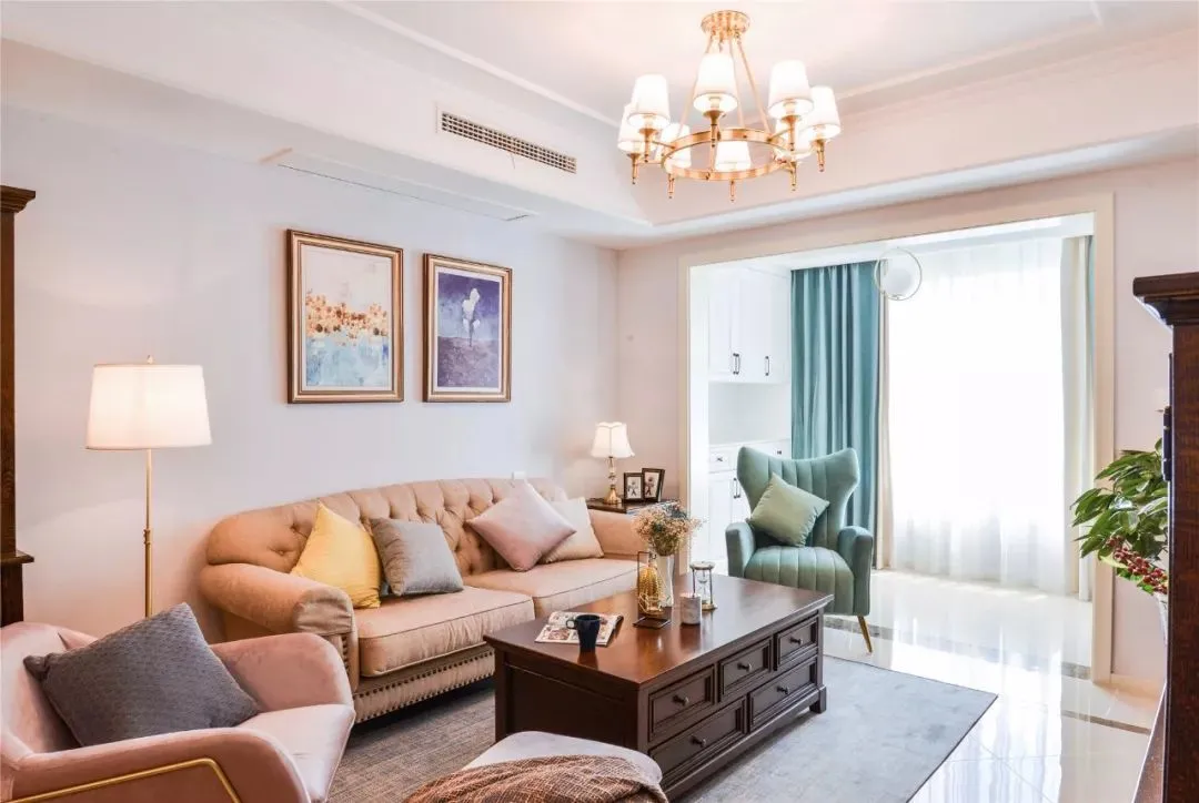 The living room and balcony are opened and merged into a whole, which makes the space look more spacious and the lighting is brighter, making it convenient for children to play freely in the open area.