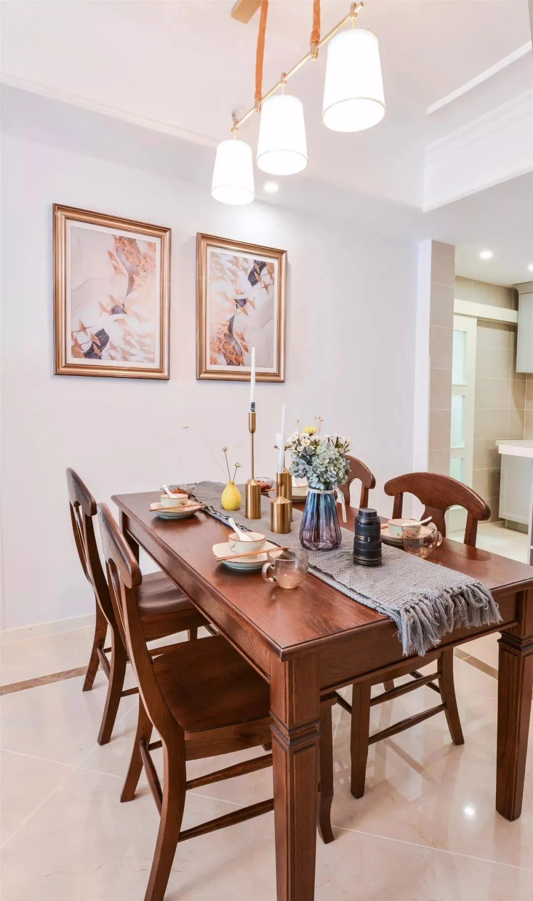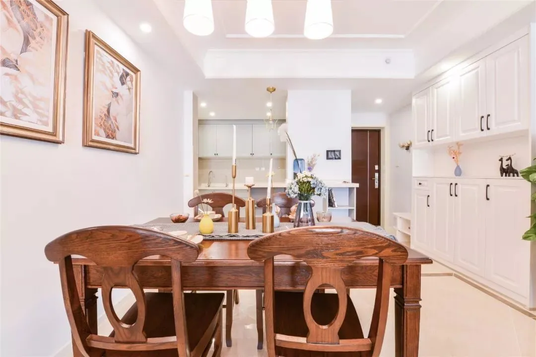 If the cabinets in the whole house are dark or light, it will inevitably appear monotonous. The custom cabinet is white, and the finished furniture is dark, which forms a rich sense of hierarchy when matched.