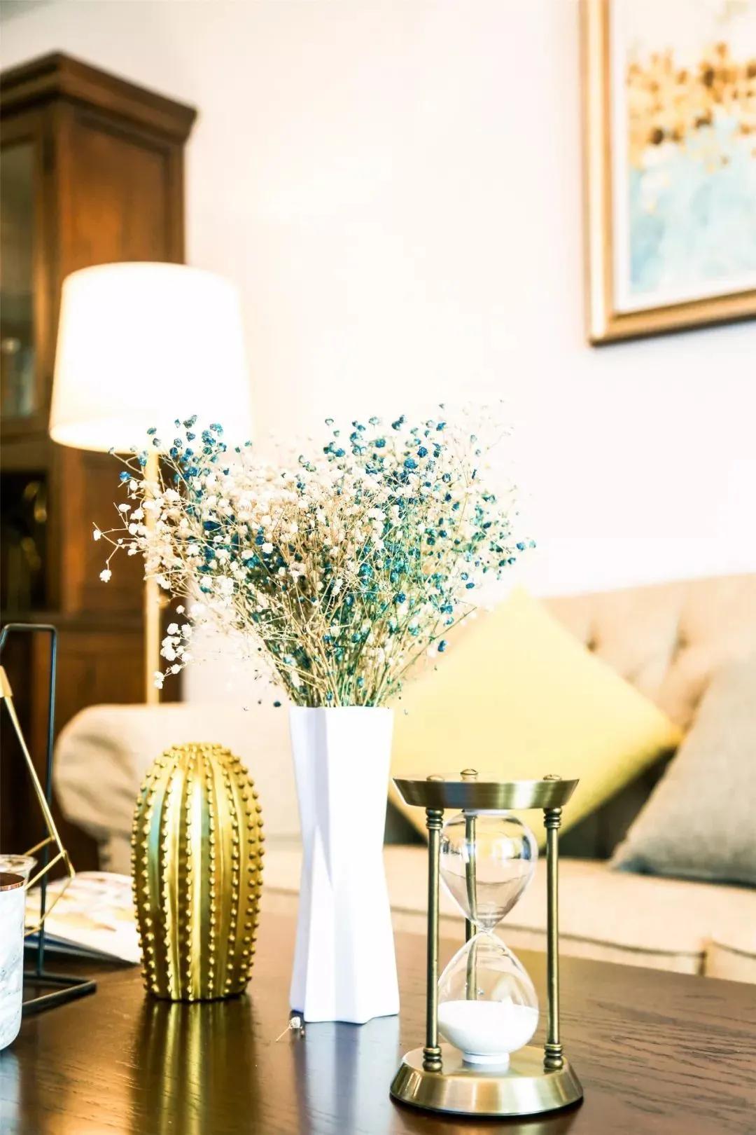 Place some small ornaments on the coffee table, and the space taste will also be improved.