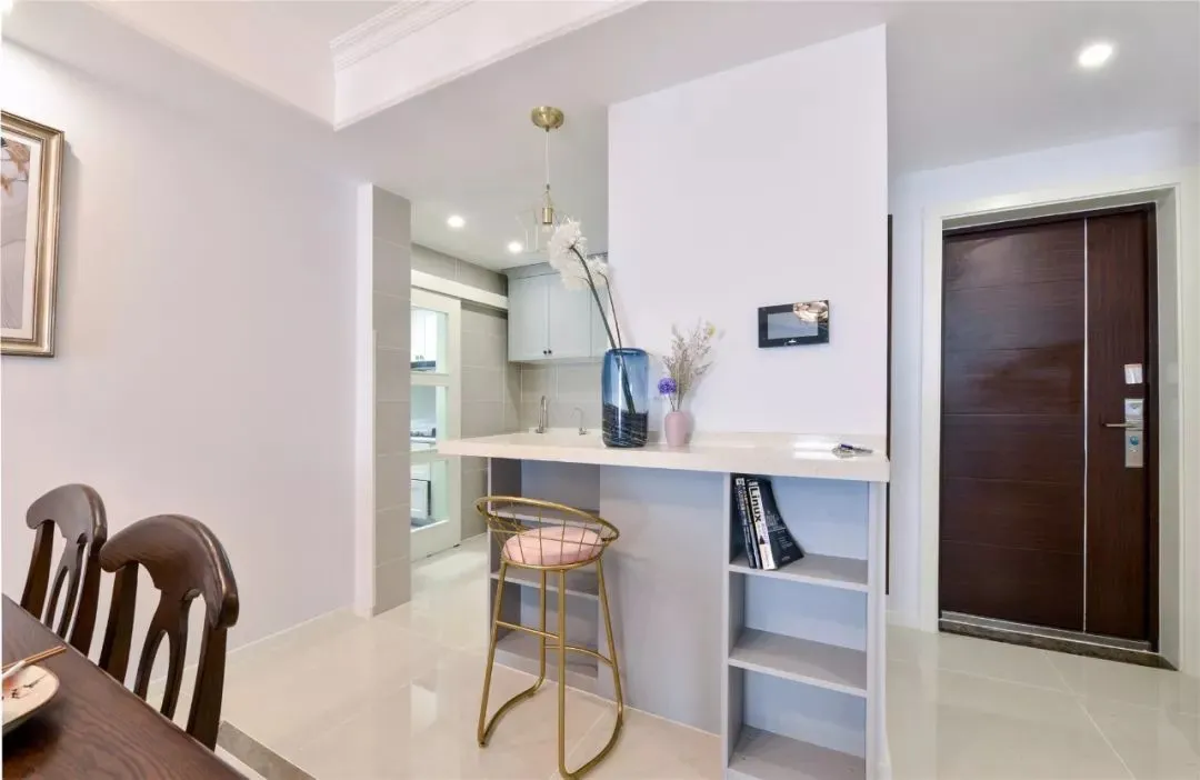 A small bar is designed between the western kitchen and the restaurant, and a storage space is also planned under the bar to meet the storage needs to the maximum extent.