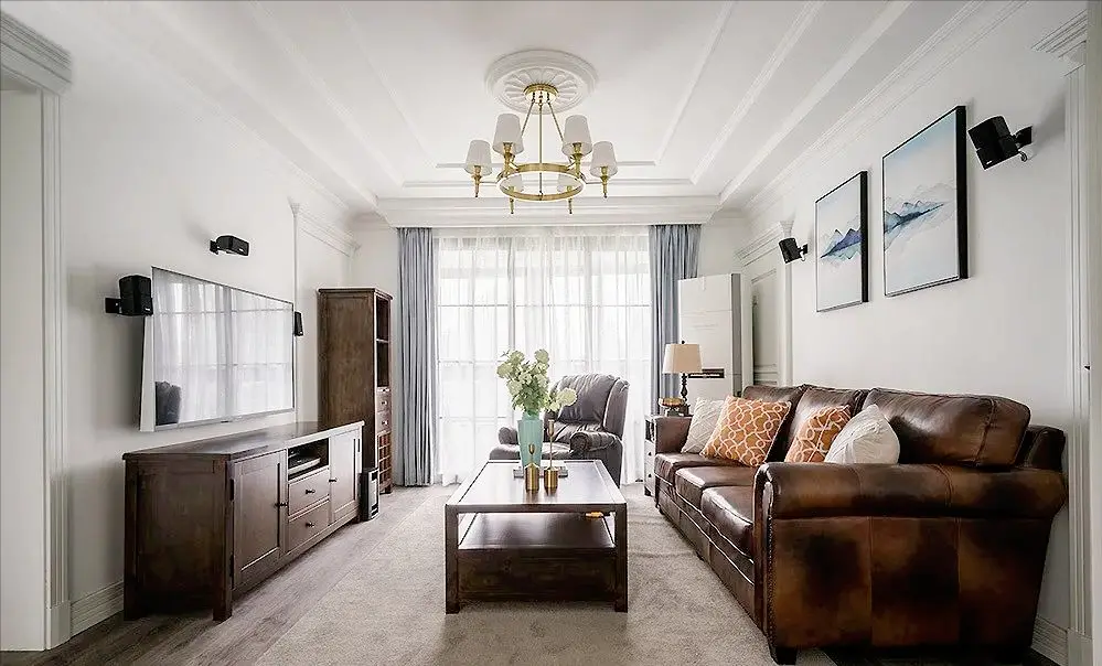 The design of TV background wall is simple and calm, without losing American style. Green plants and white ornaments inject a fresh and natural breath into the space.