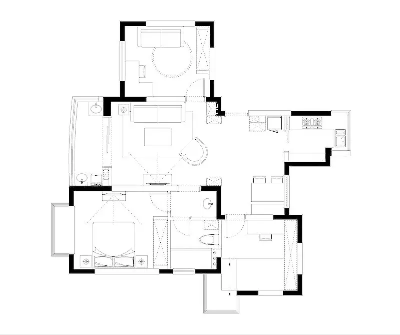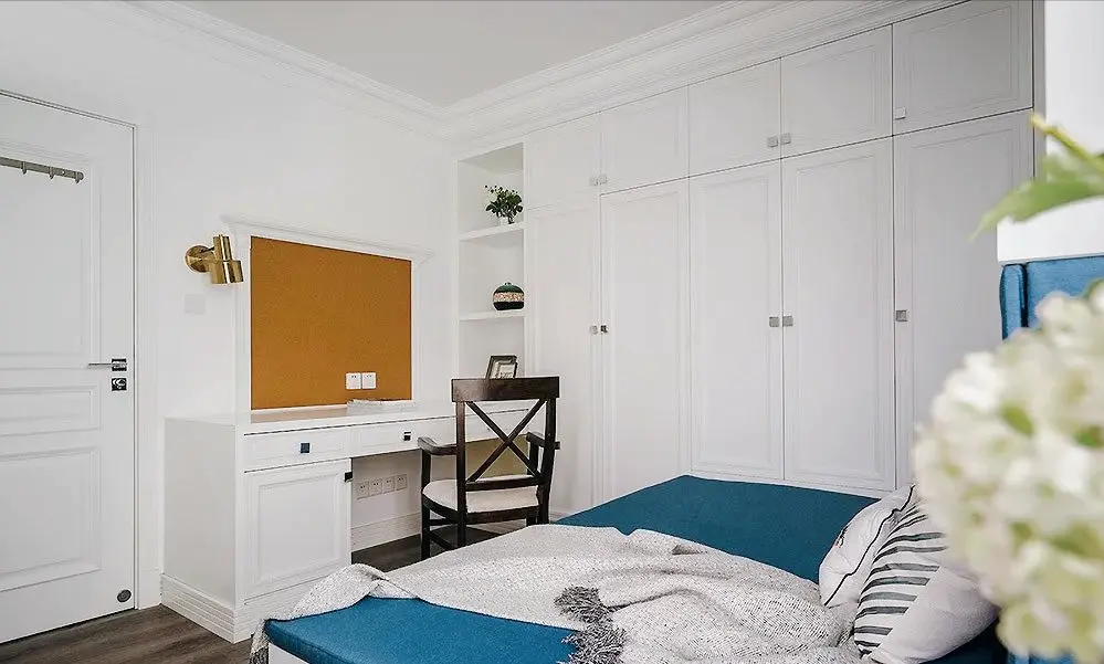 This is a set of American style decoration cases. On the basis of meeting the needs of the owner, the designer uses elegant colors to match with soft furnishings to create a comfortable and pleasing space.