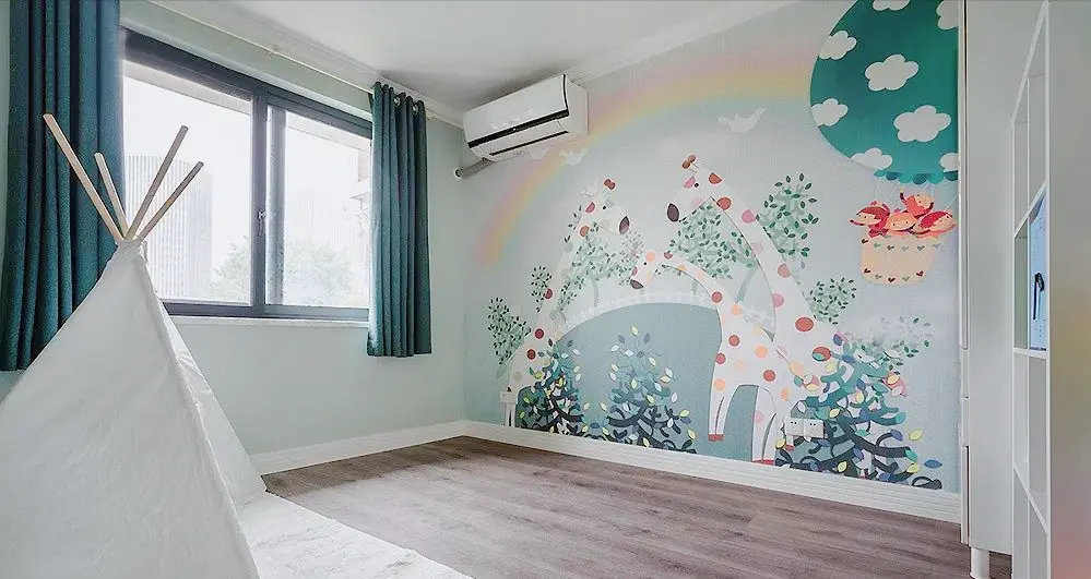 In the children’s room, a tent and carpet form an entertainment area, creating a camping-like atmosphere, which is easy to release children’s nature.