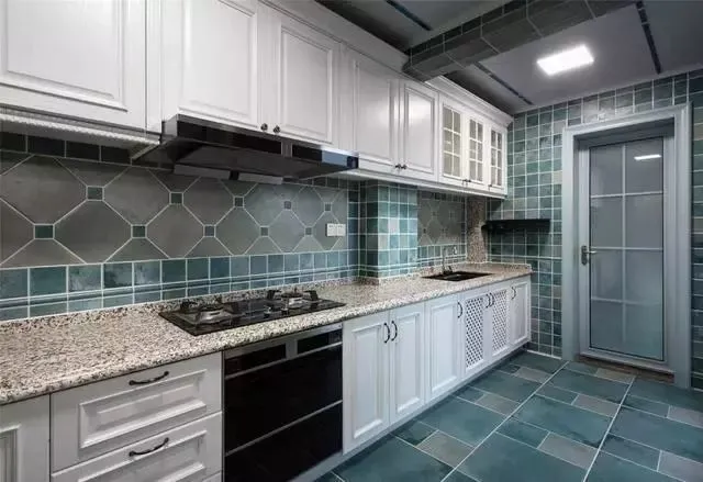 The paving of blue tiles makes the kitchen look more refreshing ~