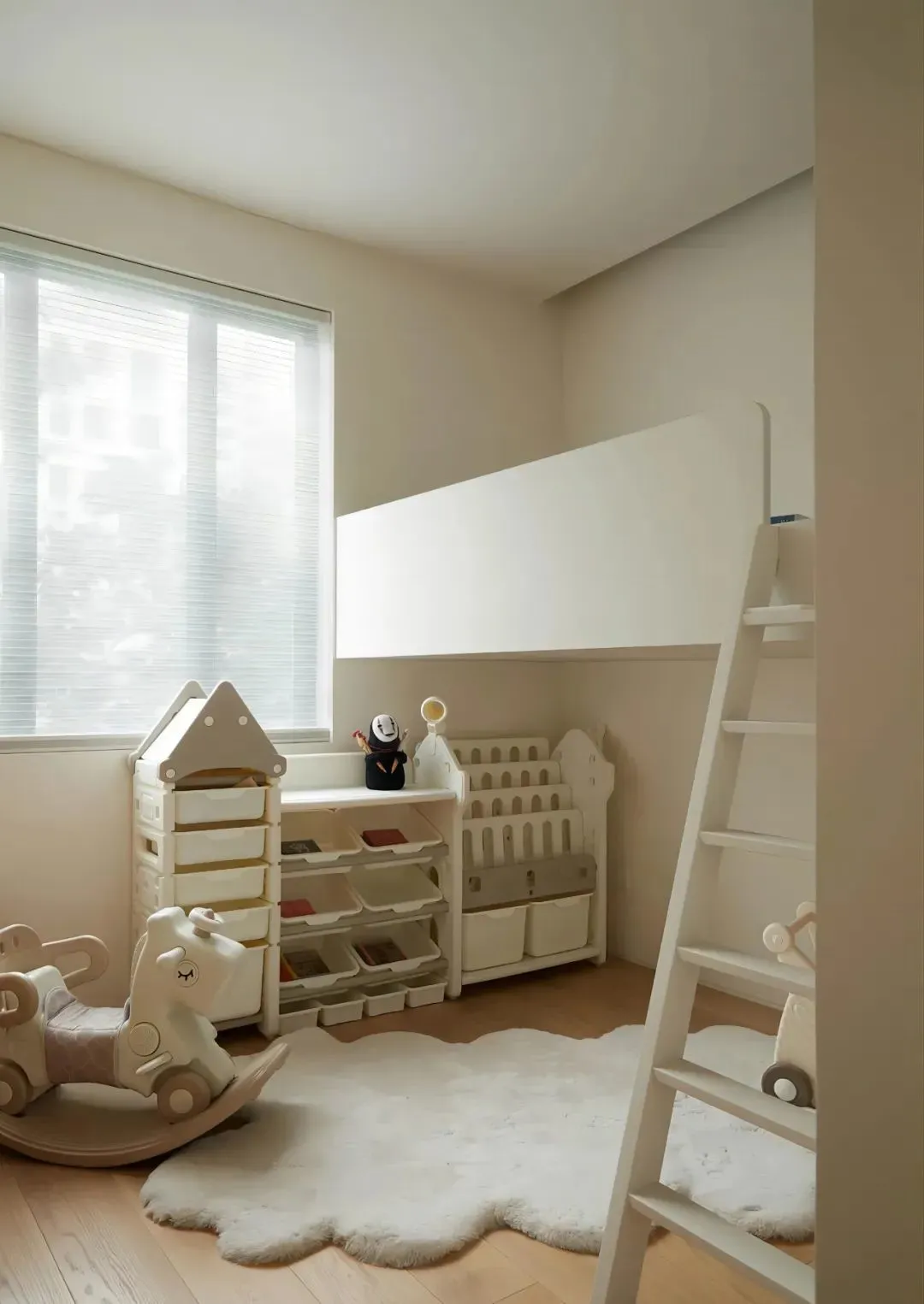 The children’s room designed with upper and lower bunks makes full use of the vertical space, with both sleeping area and activity area. A low cabinet that conforms to the child’s height is specially selected, which is convenient for children to pick up and put picture books and toys by themselves.