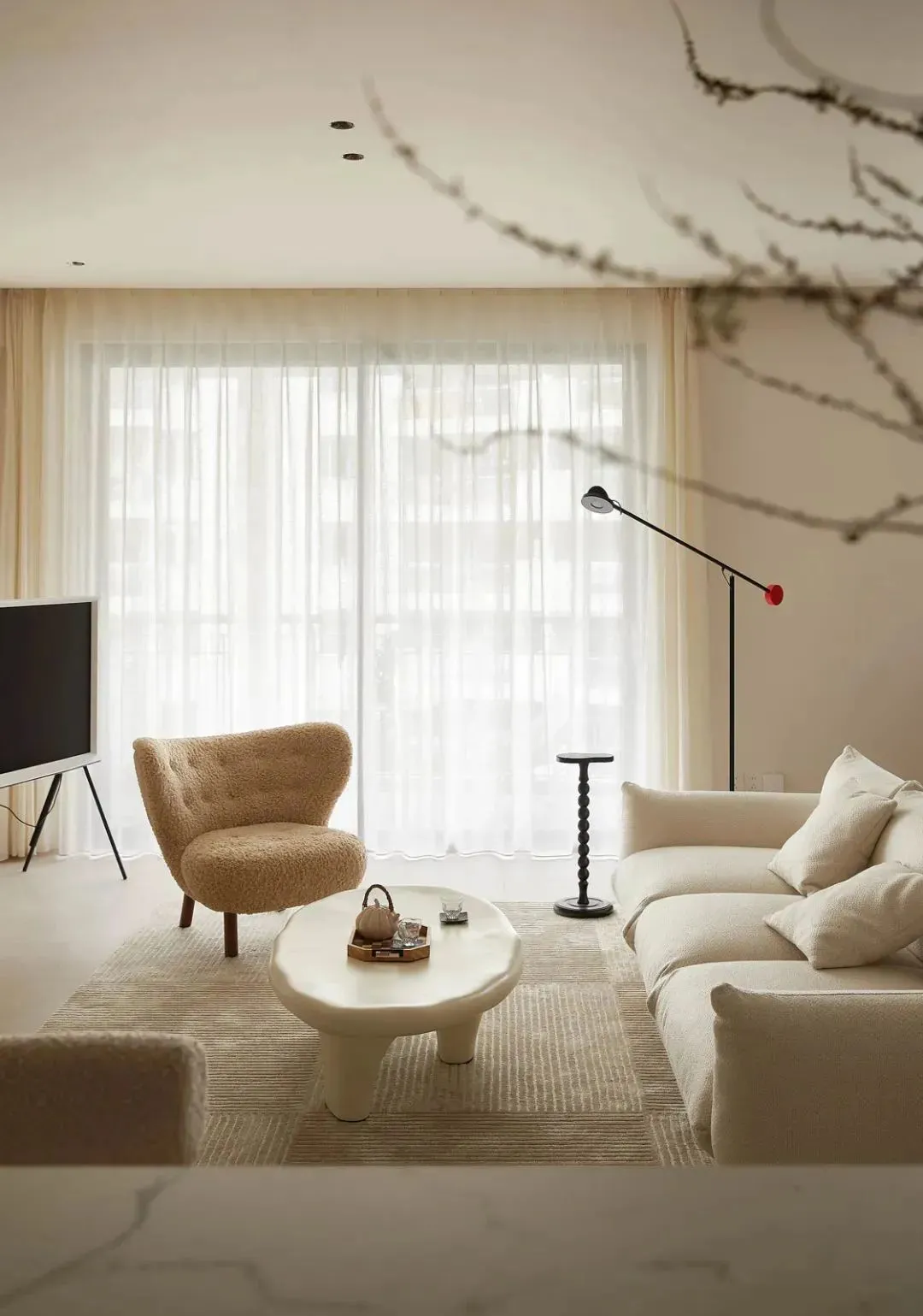 The corners of the cloud-shaped coffee table are rounded, not easy to bump, and it is also responsible for the face value of the space.