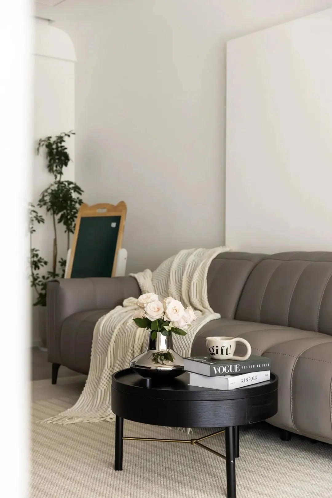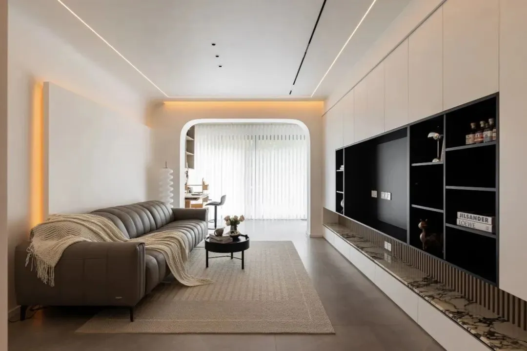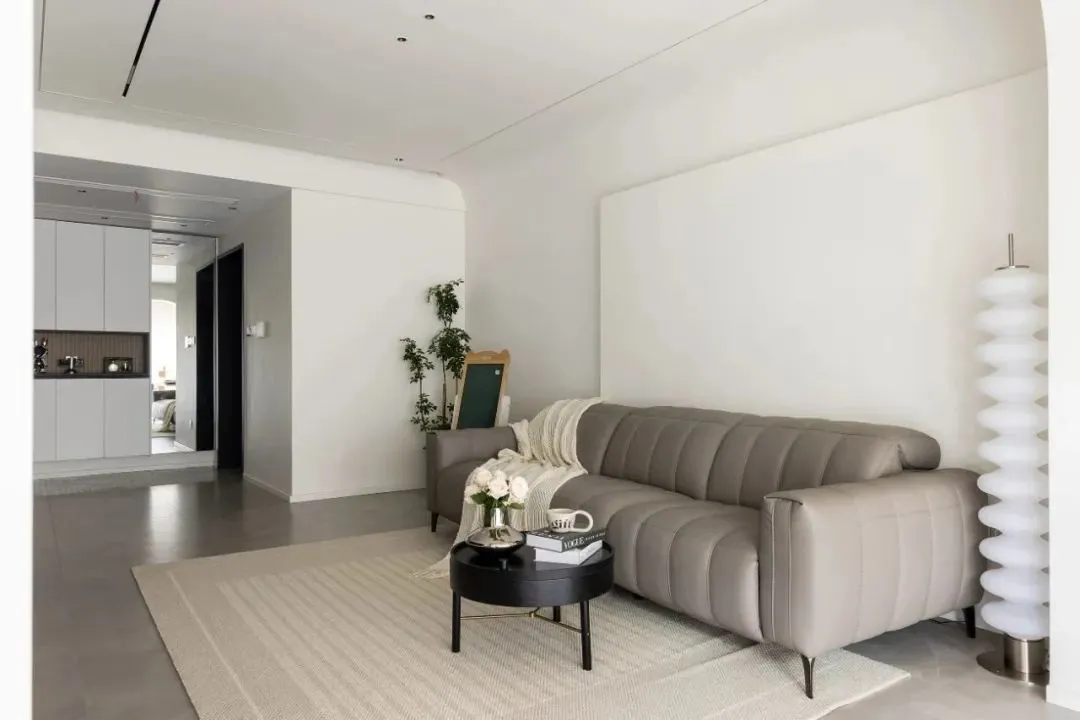 The overall space is dominated by gray and white, which contrast with coffee and black. The combination of beauty and practicality highlights the modern style and presents a simple and natural sense of comfortable space.
