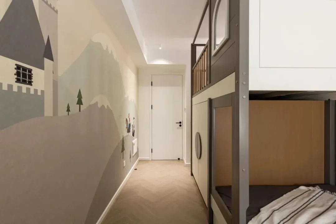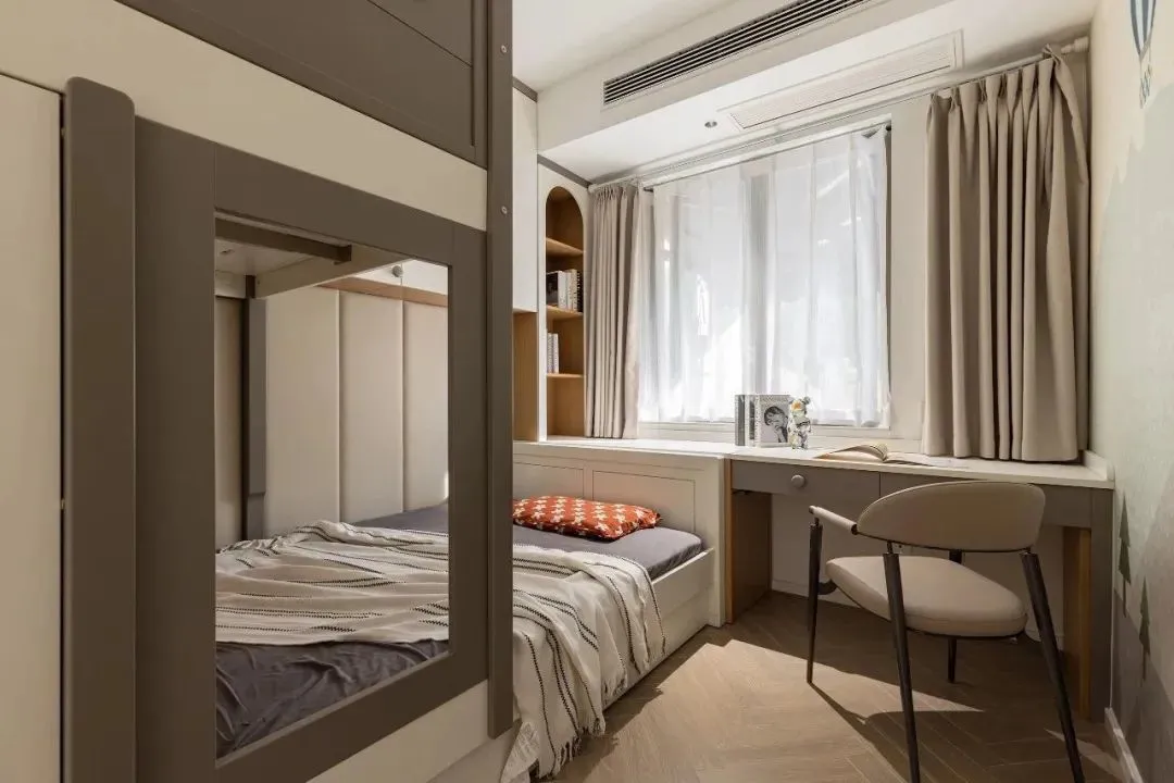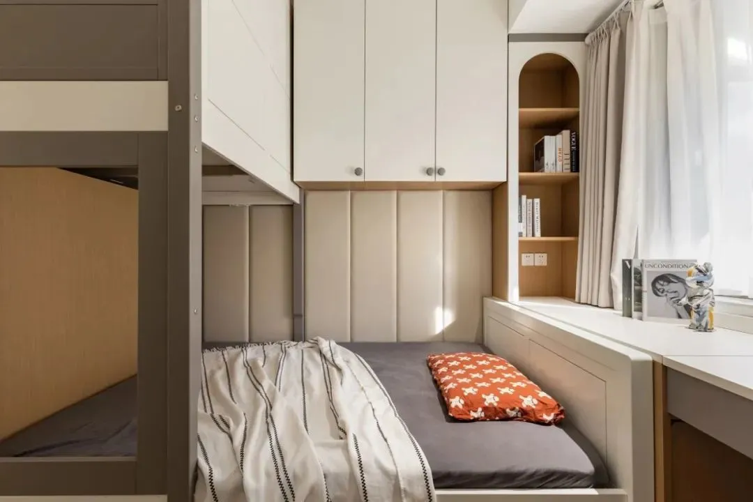 Staggered bunks meet the living needs of two children, and at the same time, they do not disturb each other through partitions.
