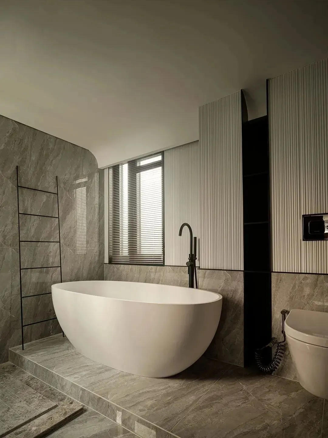In the bathroom, the wall is outlined with simple lines, which not only shows restrained personality, but also enriches the level of space and sense of dialogue.