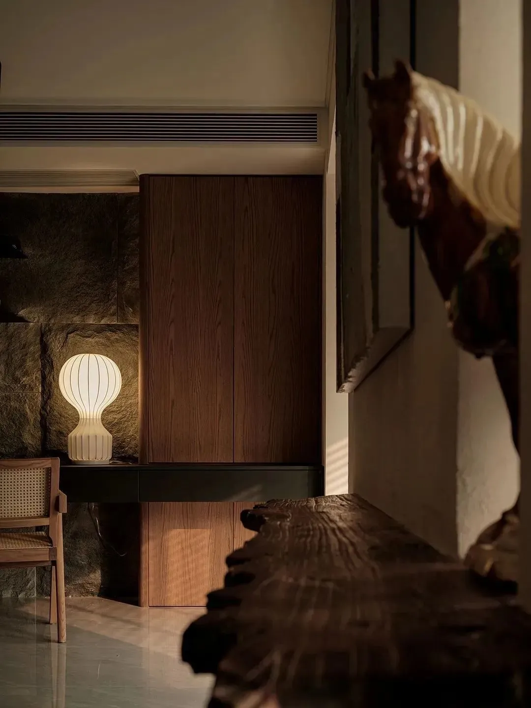 The warm and soft atmosphere fills the air, making the space no longer just a simple container, but full of artistic and spiritual nourishment. Here, every book and document carries the owner’s thoughts and yearning, injecting cultural charm into the home.