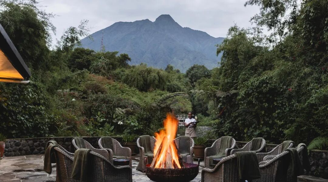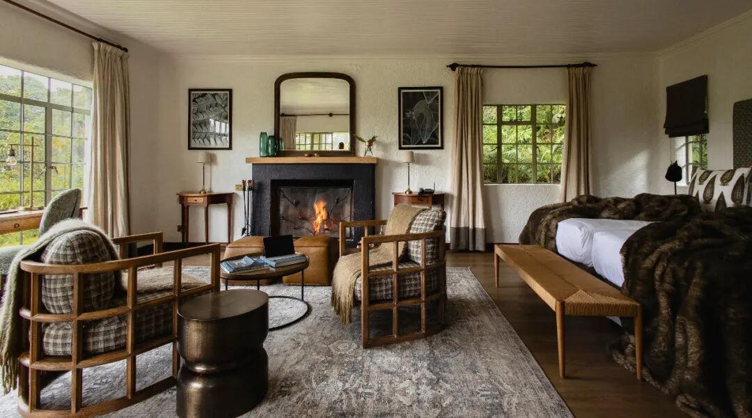Then, take about 2.5 hours by car to the boutique wild luxury hotel adjacent to Volcano National Park. The hotel has only 8 elegant rooms with a welcoming fireplace sitting area and a viewing terrace with magnificent views of the Virunga Volcano.