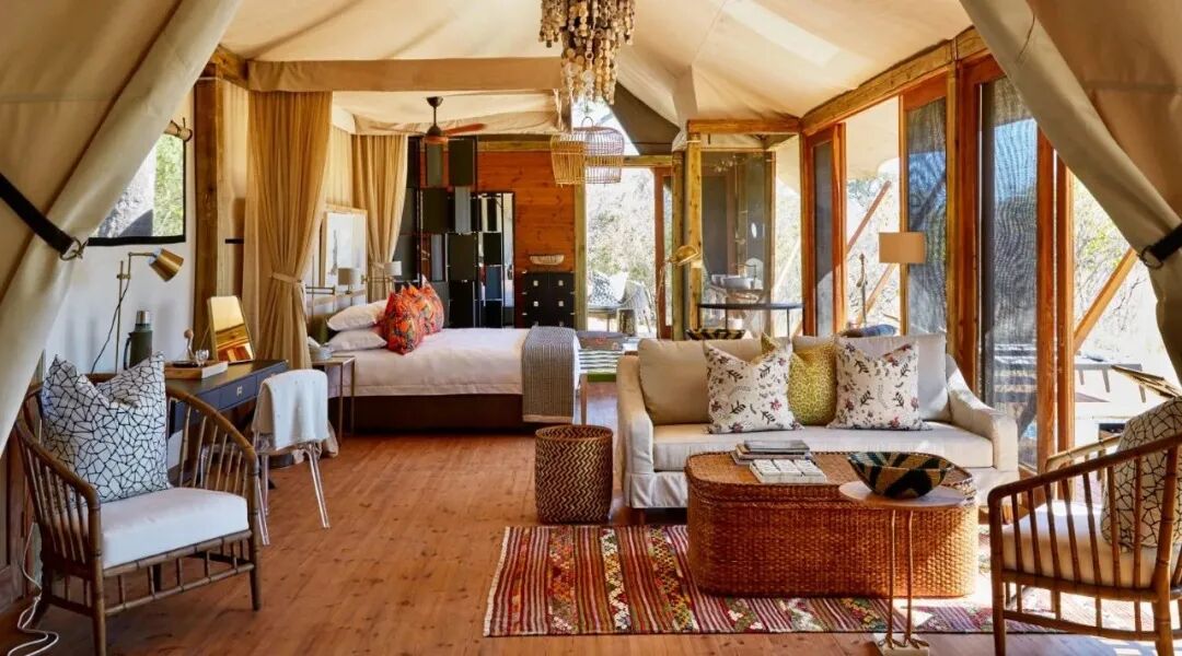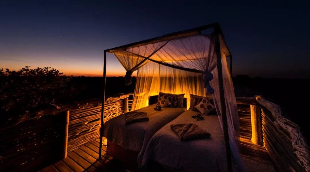 The camp is completely different from Okavango’s style. It follows the retro and nostalgic style of the first European explorers. The white tent is shaded under the palm trees of the vast plain. The vocabulary associated with it is not fashion or simplicity, but the glitz and romance of the old times. Stay here for 2 consecutive nights.