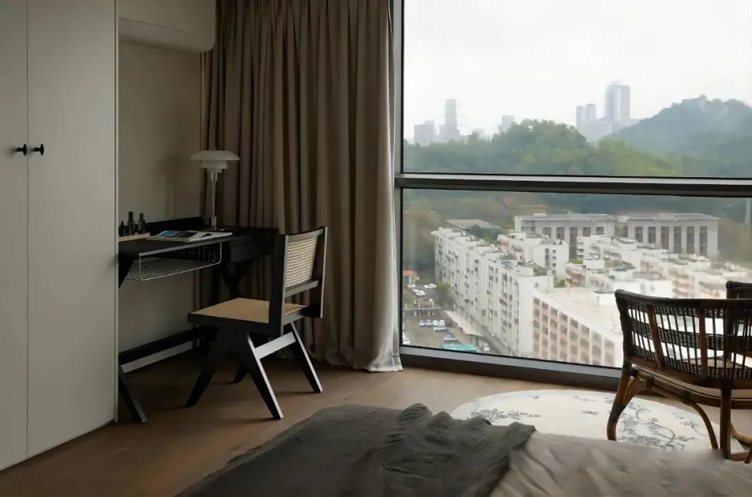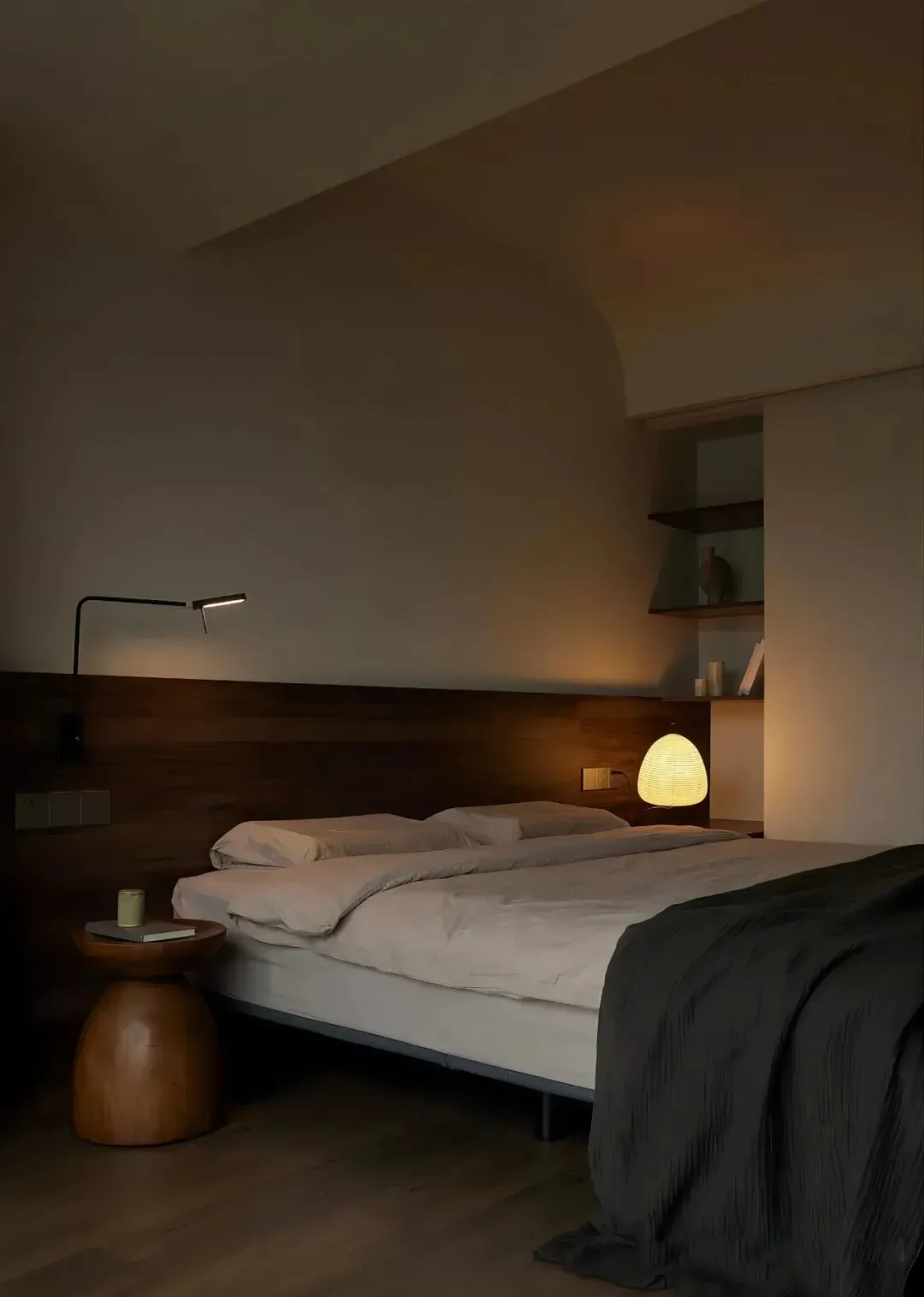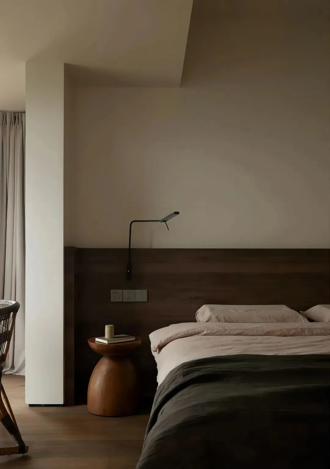 The master bedroom continues to pay attention to light and shadow, and the table lamp and rocker wall lamp meet the lighting and atmosphere needs of various scenes.