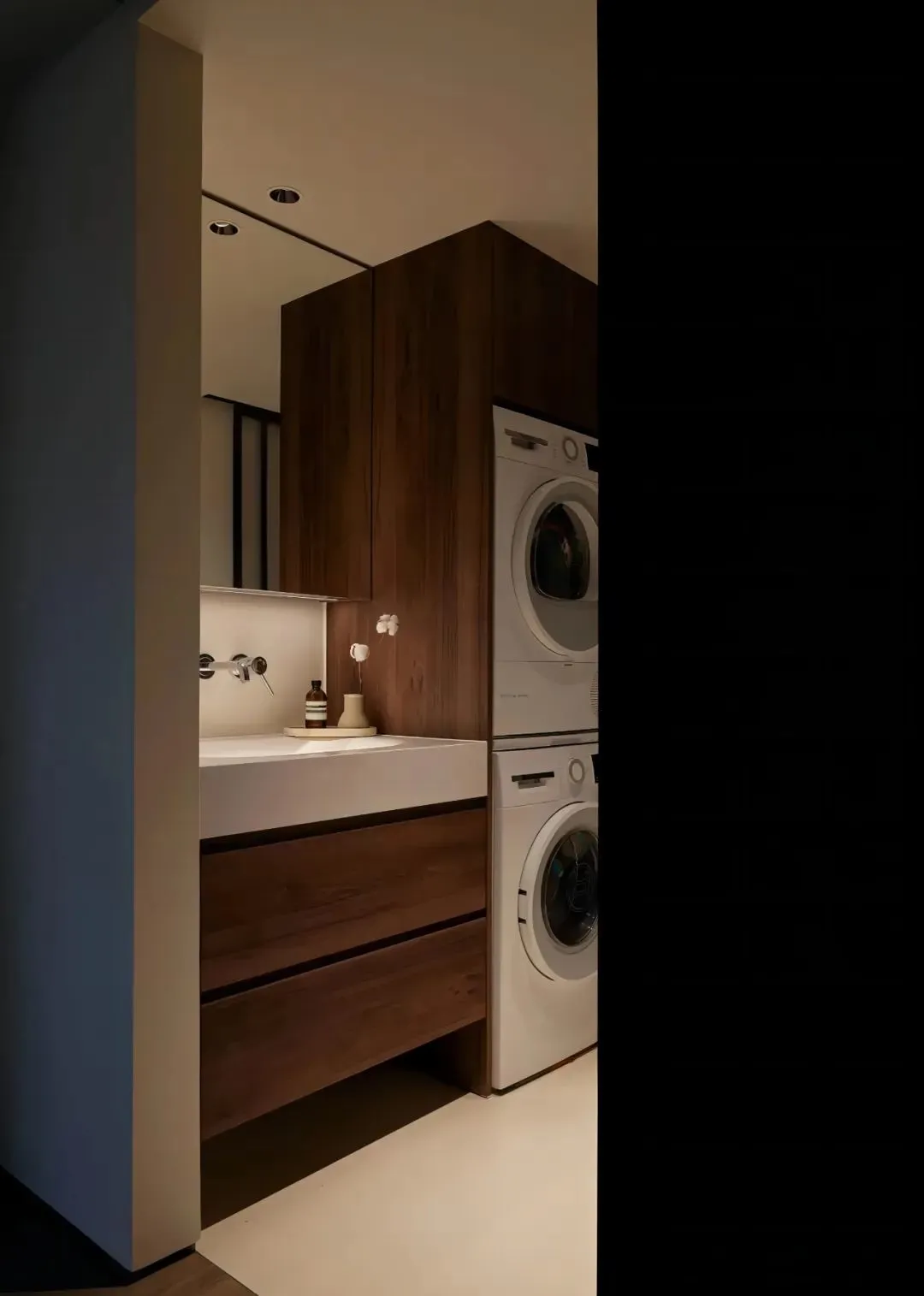 Part of the second bedroom area was borrowed, the washing area was expanded, and a sink and a washing and drying set were installed.