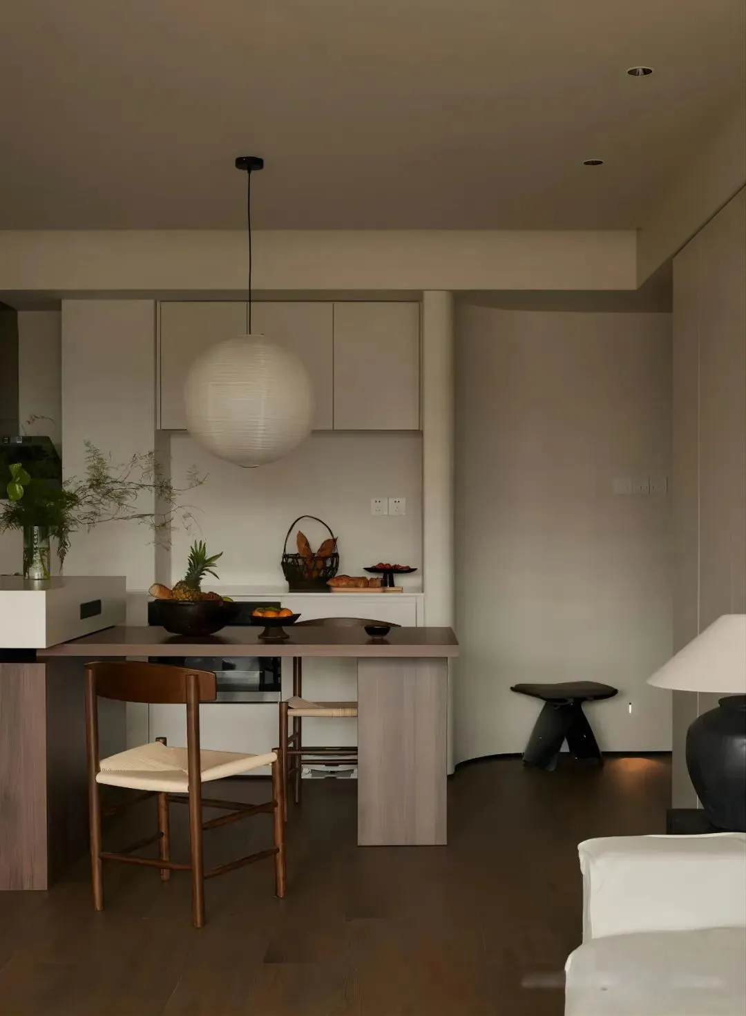 Design Points:Keep the original three-bedroom pattern, focusing on resetting and optimizing the space functions. The whole foundation is set by beige art paint and dark wood finish, combined with the creation of light and shadow atmosphere, to build a relaxed and comfortable home for the owner.