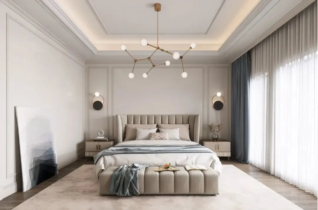 American light luxury style has been deeply loved by middle-class young people in recent years, and it is simple and elegant without losing the sense of high-end. The latest trend is to add bright colors in the form of color blocks to the overall simple tone to make the space more vivid. These finishing touches are often done by hanging paintings and soft cloth decorations.