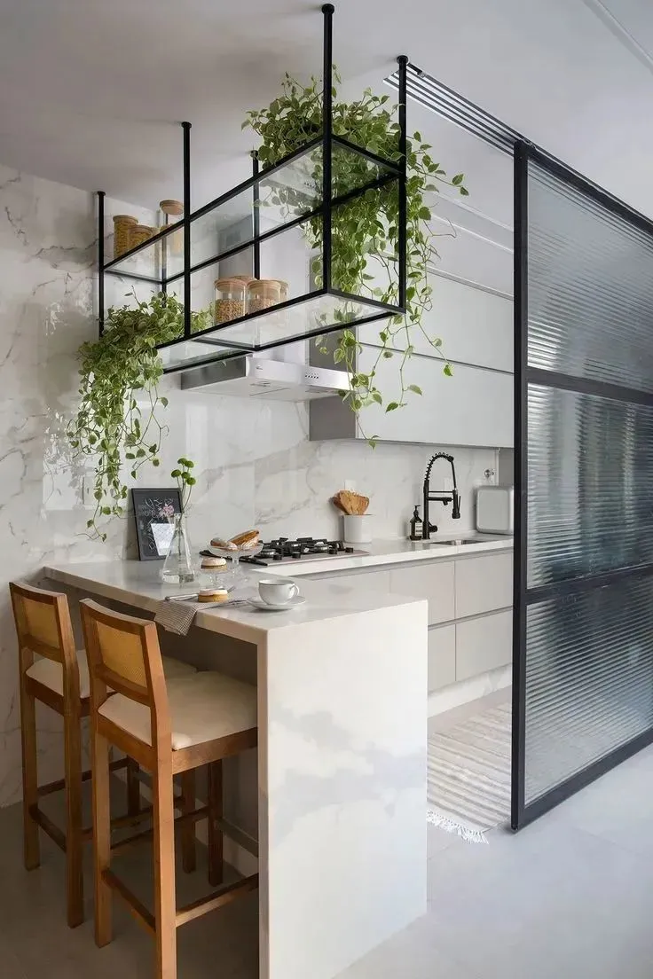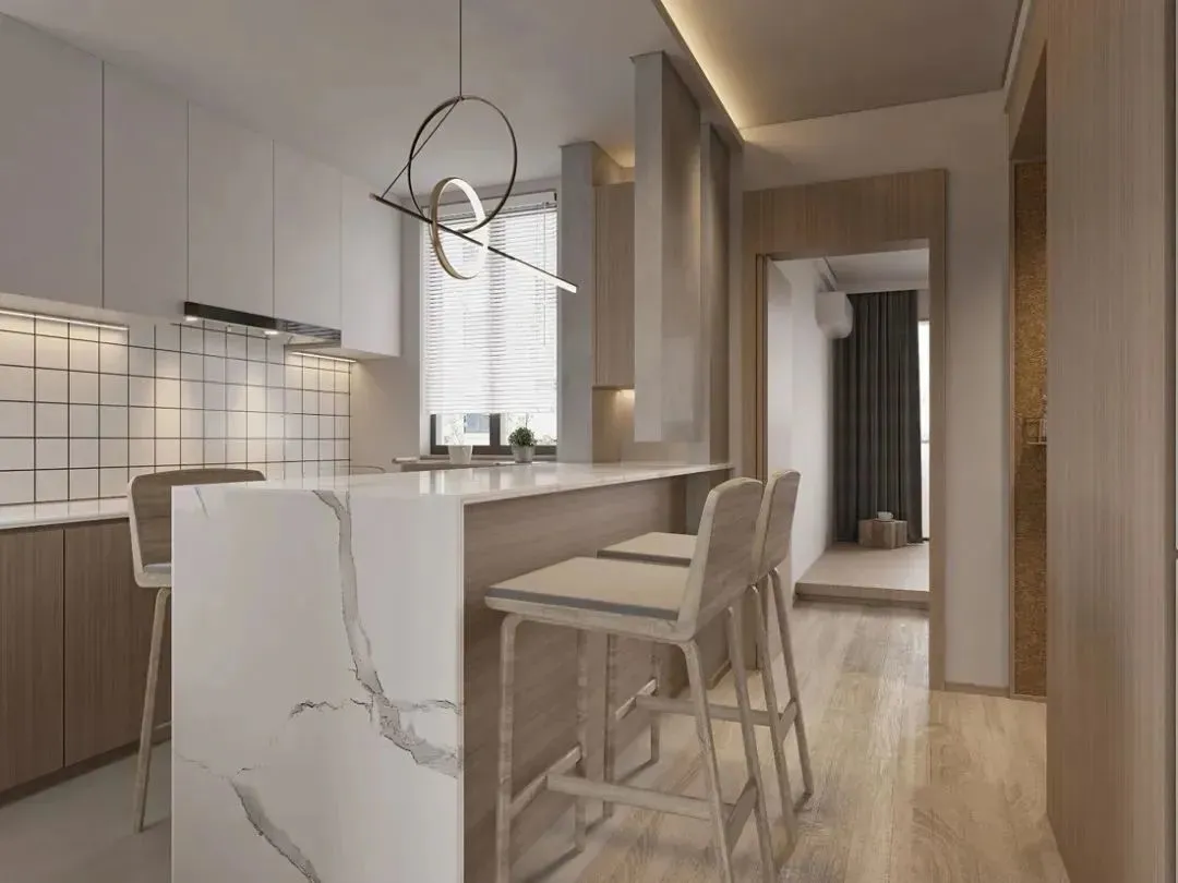 Although the bar can add atmosphere and mood, it is not used frequently for many families, and may only be used to hold cups or sundries in the end. Therefore, it is best to think clearly about its main purpose before deciding on designing a bar counter. If it is a small apartment, it is a good choice to replace the dining table with it.
