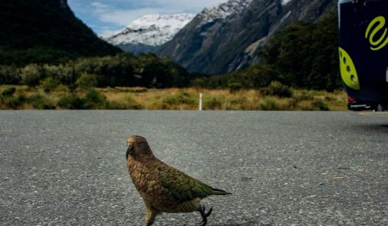 It is also the only alpine parrot in the world and the endemic species of New Zealand-Kea, which is often haunted. They are curious and unafraid of people, sometimes even pecking at the wiper rubber of a car.