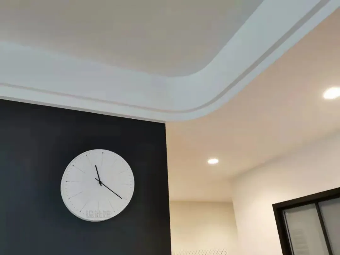 Nowadays, the popular double eyelid ceiling can actually be combined with the “convex ceiling”. Adding a circle of double eyelid lines to the peripheral edges of the protruding ceiling can not only alleviate the stiffness caused by the right angles of the ceiling, but also make the shape layers richer and look simple and exquisite.