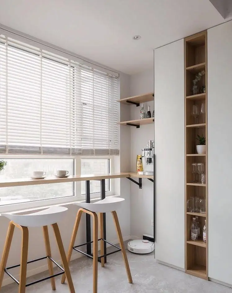 If the balcony is independently enclosed, a small table can be arranged here with a few barstools. Sit here with a cup of coffee or tea in the afternoon, enjoy leisure time, and the quality of life will be instantly improved.