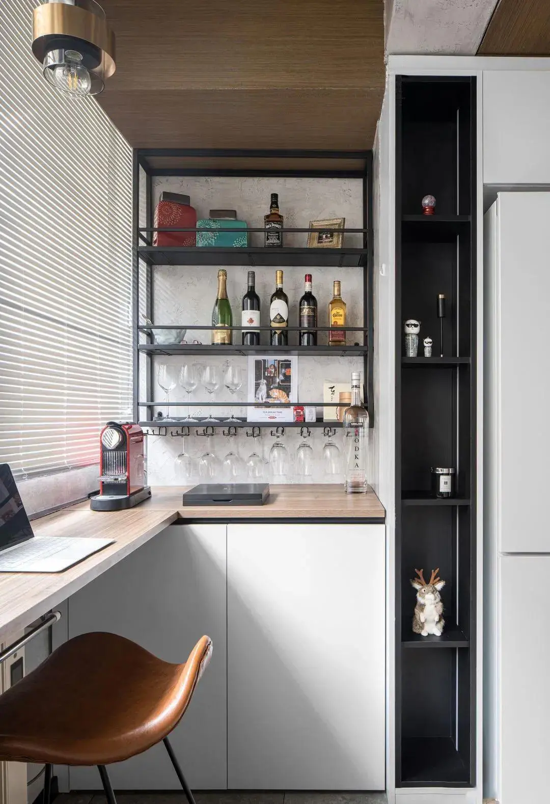 Many friends like to have a drink before going to bed. At this time, you can design a simple bar on the balcony. Sitting by the window at night, watching the lights and traffic outside the window, and savoring a glass of fine wine, is quieter and more comfortable than in a bar.