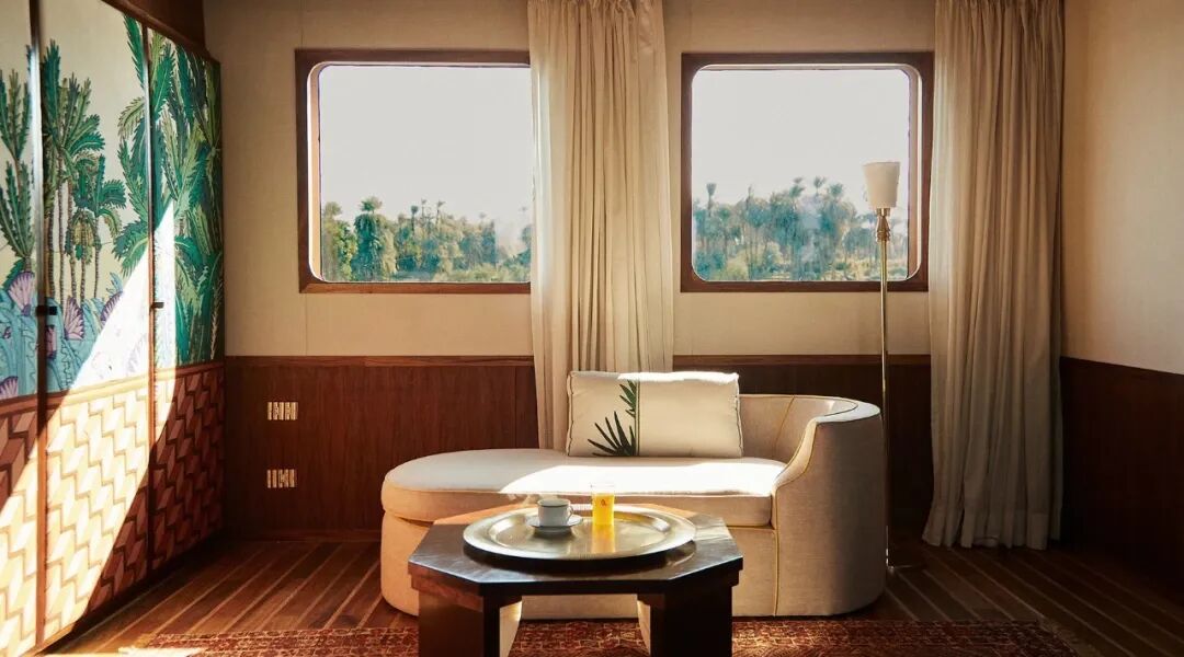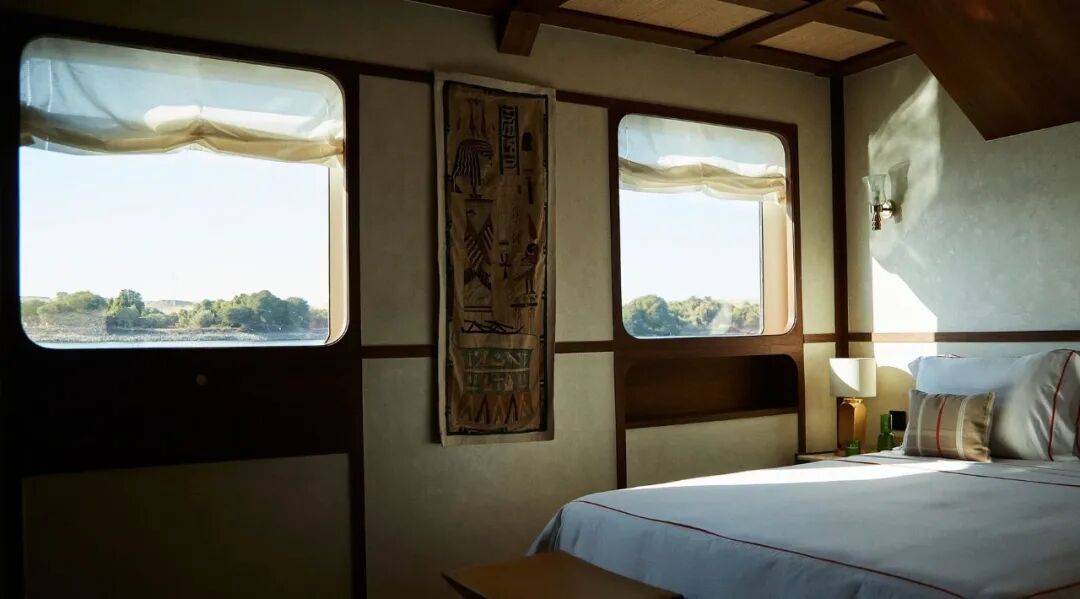 Every corner of the ship is a tribute to ancient Egyptian civilization: from the drawer wrapped in papyrus to the tapestry hanging in the cabin; From the embroidery depicting panoramic views of the Nile, to the starry ceiling that echoes the tomb of Seti I.