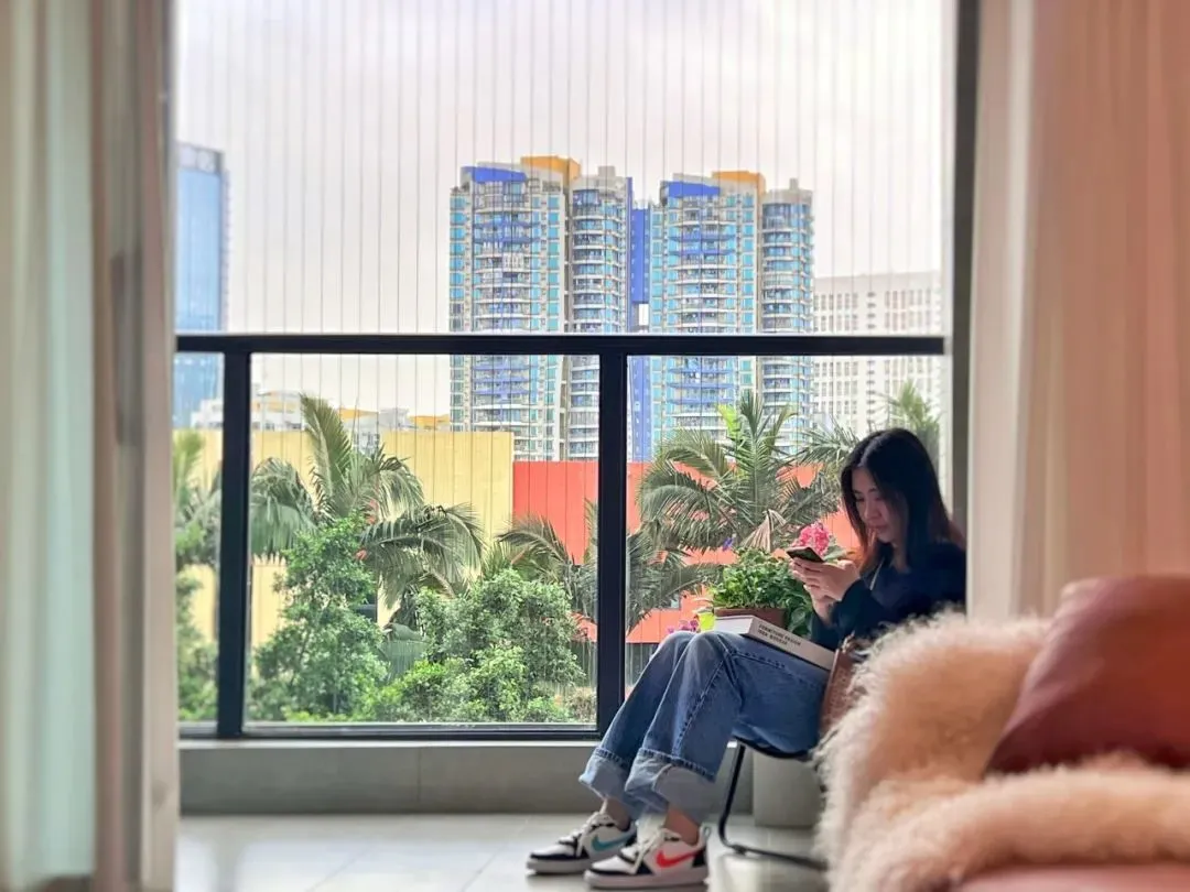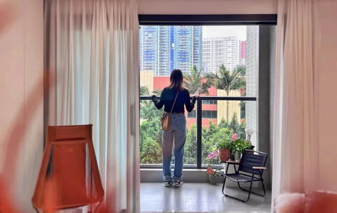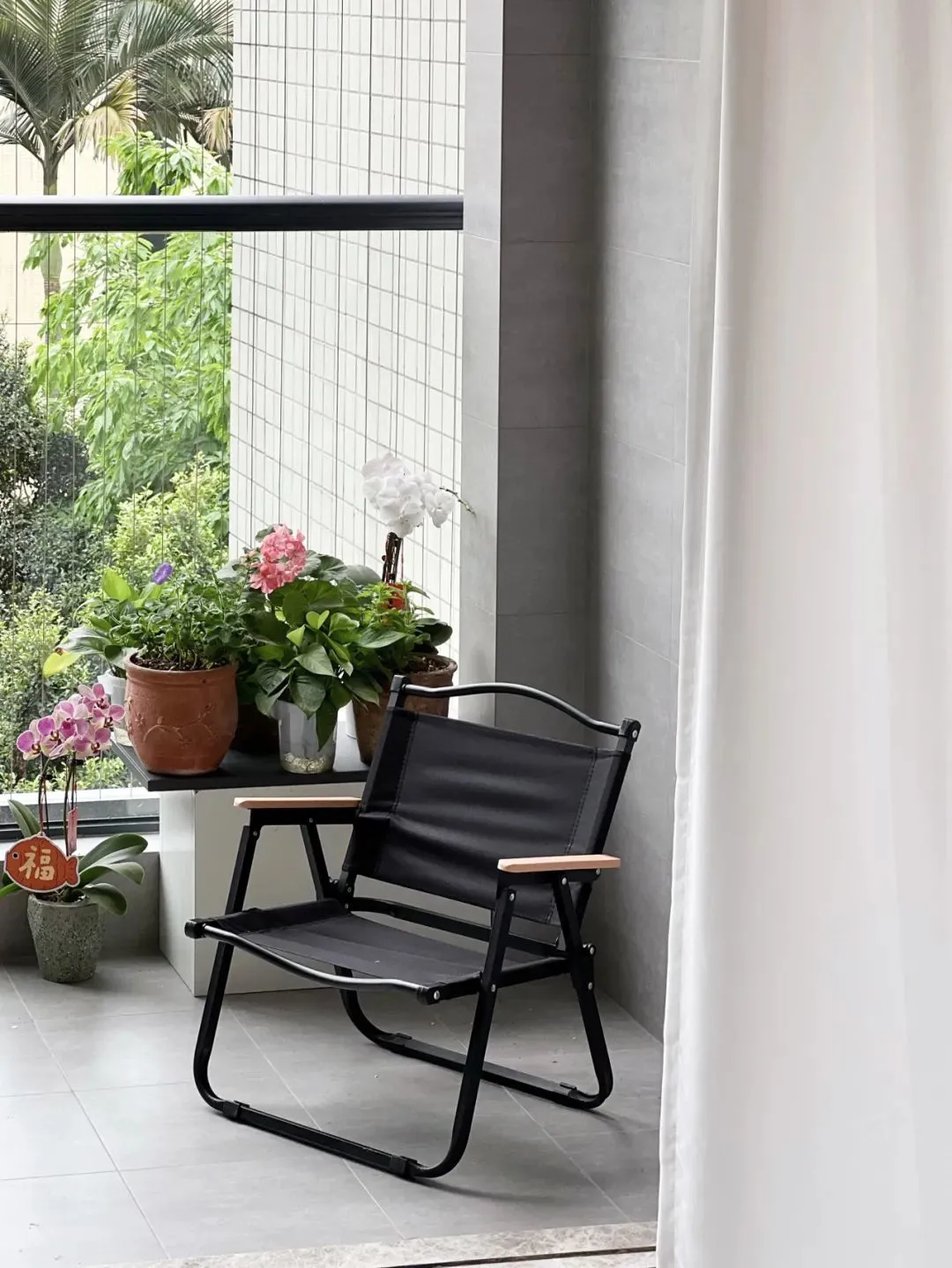 Outside the window is full of greenery and the view is wide. Families often read books, enjoy flowers, drink tea and enjoy a pleasant time here. After taking care of the flowers and plants, the hostess also likes to relax by leaning on the railing here.