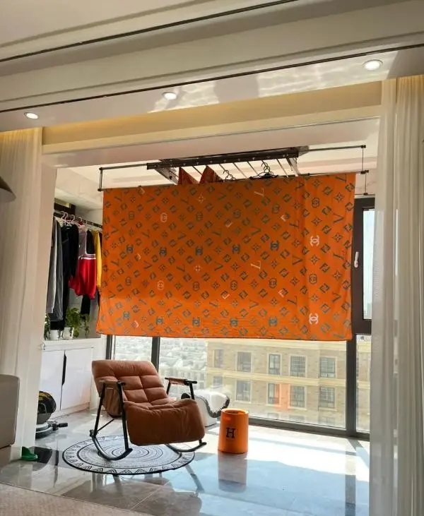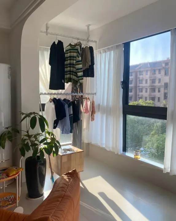 Are all the drying racks at home installed directly above the balcony? Every time the clothes are drying, the balcony looks messy, and it will block the lighting of the living room.